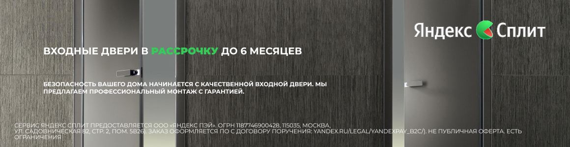 Мы продолжаем делать покупки в «АлПлаза ПРО» максимально удобными и доступными. Хорошая новость для тех, кто давно присматривает надежную входную дверь, но хочет распределить платежи: теперь у нас можно оформить рассрочку через сервис Яндекс Сплит на срок до 6 месяцев!