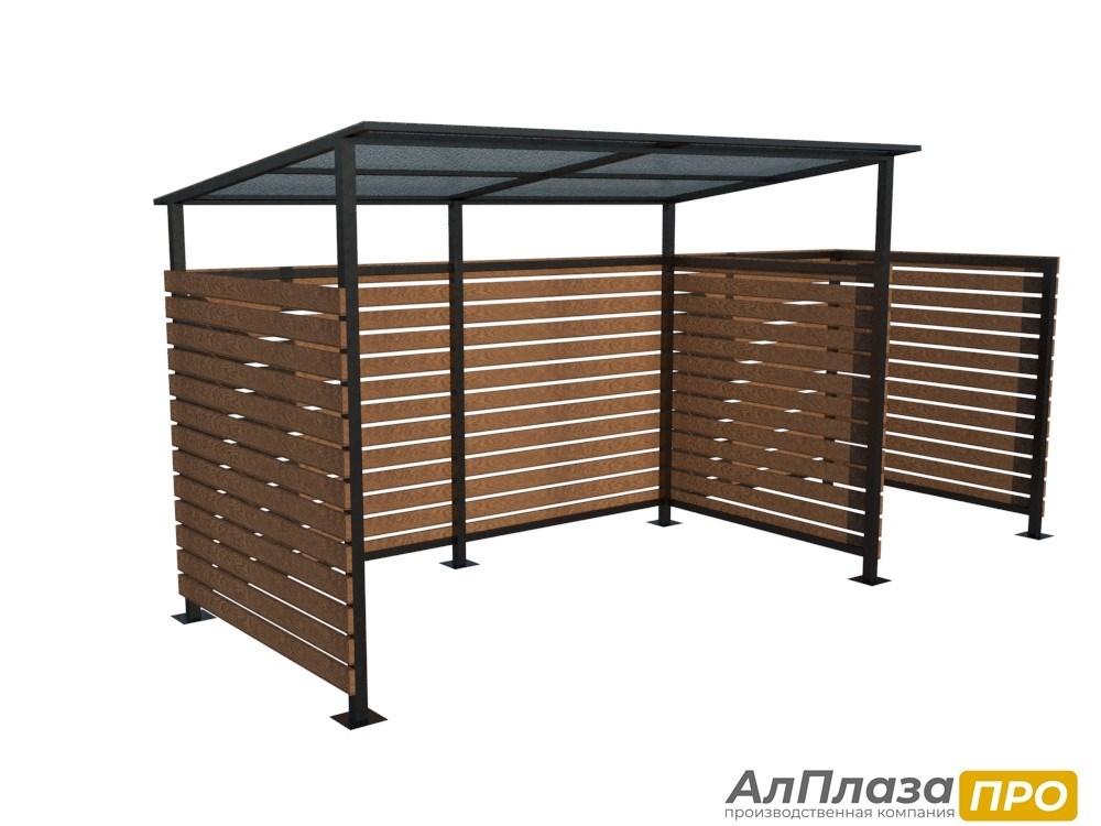 Ограждение для контейнерной площадки серии "FORESTER LITE" (2 контейнера) изготавливается из металлического каркаса сечением 50*50*1,5 и 40*20*1,5. Каркас окрашивается полимерно-порошковой краской, цвет можно выбрать по каталогу RAL. Боковые стенки доской из лиственницы покрытой лаком. Цвет так же можно выбрать согласно каталогу. Крепление доски производится при помощи саморезов к каркасу ограждения. Крыша покрыта прозрачным сотовым поликарбонатом толщиной 6 мм. Крепление ограждения ТБО возможно как к бетонному основанию при помощи анкеров, а также при помощи бетонирования столбов в грунте.