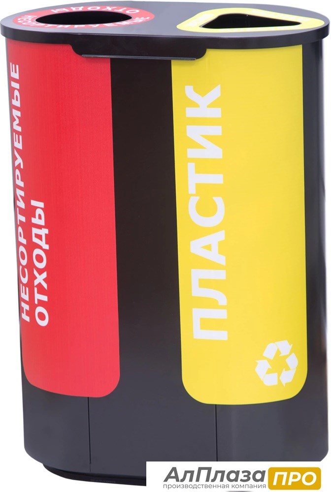 Урна для раздельного сбора мусора Акцент-2 с наклейками - урна специально разработана для организации эффективного раздельного сбора мусора в общественных пространствах. Её конструкция и функциональность максимально соответствуют задаче сортировки отходов, способствуя экологической ответственности и упрощая дальнейшую переработку сырья.